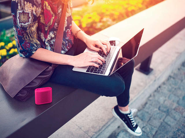 Вградена акумулаторна батерия, за да слушате музика навсякъдеСлушайте музика с мощен звук – навсякъде и по всяко време. Вградената акумулаторна батерия ви позволява да се наслаждавате на любимата си музика без плетеницата от захранващи кабели и без неудобството да търсите електрически контакт. Слушате прекрасна музика, сега със свободата на пълната преносимост. |