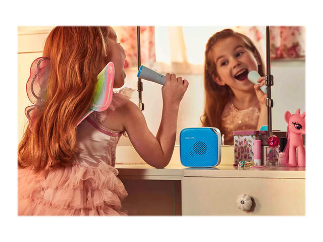 - Този ултрапреносим Bluetooth високоговорител разполага с безжичен микрофон. Децата могат да пеят с музиката, да разказват истории или дори да изпълняват сцени от филми с приятелите си! Независимо от това какво изберат да изпълнят записването с едно докосване ги улеснява да запишат песните си на micro SD карти.