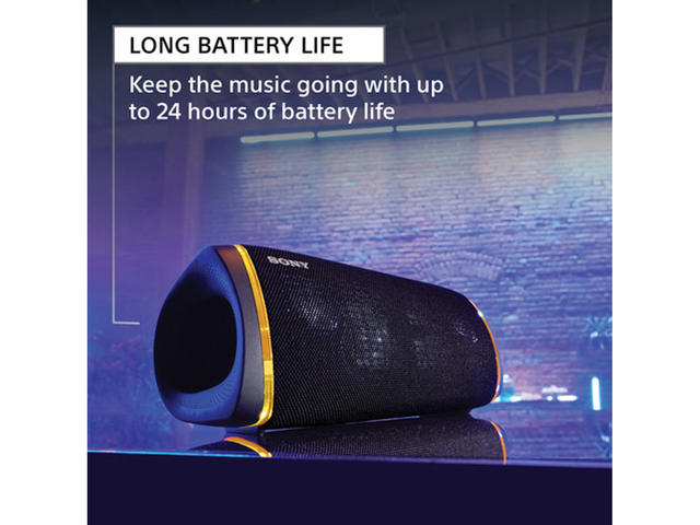 - До 24 часа живот на батерията означава, че SRS-XB43 може да купонясва по-дълго и от вас. Дори с включени светлини и в режим EXTRA BASS™ може да купонясвате до 14 часа.