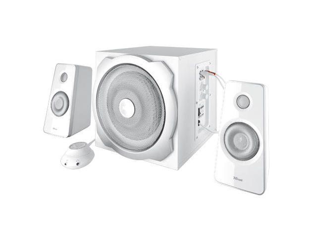 - 2.1-канални високоговорители в комплект с дървен събуфър с обща RMS мощност 60 Watt (120 Watt върхова мощност)