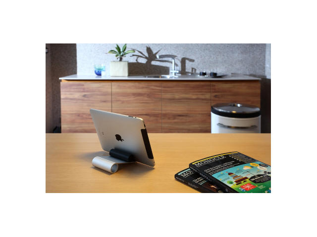 Дизайнерска алуминиева стойка за iPad от Just Mobile. Поставяте iPad-a в различни позиции: хоризонтално или вертикално, или в положение, удобно за писане. |
