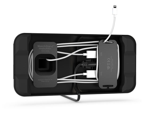 - WatchStand разполага с вградено управление на кабелите както на Apple Watch, така и на iPhone или iPad