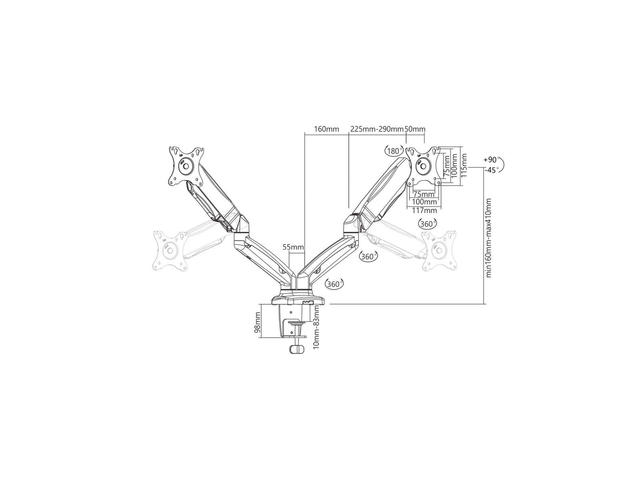 - Стойка за LCD монитор с газова пружина, за монитори с тегло до 6.5 кг и VESA 75/100