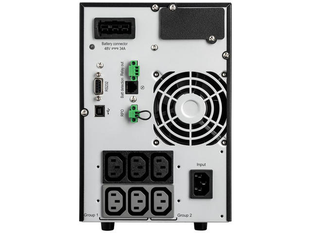 - Комуникация: USB порт (съвместим с HID), сериен порт (RS232), мини-терминален блок за дистанционно изключване на захранването, мини-терминален блок за изходно реле, сухи контакти (2 изхода, 1 вход, оптрон, DB9)