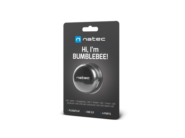 - USB хъбът на Natec Bumblebee има 4 USB входа. Сега всички наши устройства могат да бъдат свързани към един HUB, благодарение на което запазваме записи в компютъра и имаме безплатен достъп до свързани устройства.