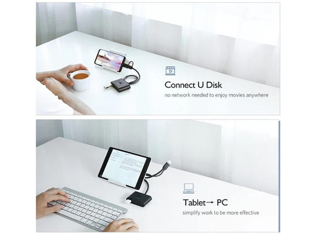 Компактен и практичен 4-портов USB 3.0 хъб със SuperSpeed с вграден USB 3.0 свързващ кабел и адаптер, предназначен за USB-C устройства като преносими компютри, лаптопи и персонални компютри, разширява опциите за свързване на вашия компютър, лаптоп или компютър с четири допълнителни USB -A 3.0 гнезда . USB устройства като USB мишка, клавиатура, USB памети, но също и USB твърди дискове могат да бъдат свързани към този хъб и използвани едновременно. С високоскоростна скорост на трансфер до 5 Gbit/s, USB 3.0 портът обещава особено бърз трансфер на данни. Може също да се свърже към вашия OTG смартфон за клавиатура и мишка на Android смартфон или Android таблет. Хъбът има микро-USB входна захранваща връзка, така че хъбът може да захранва и външни устройства с мощност (до максимум 2 A). Просто свържете микро USB кабел (продава се отделно) с USB захранване към хъба и хъбът ще има достатъчно мощност за външни твърди дискове. С 4-портовия USB 3.0 / 2.0 хъб можете да разширите своя нов USB-C преносим компютър, лаптоп или MacBook с допълнителни четири USB порта, така че да можете да свържете допълнителни USB устройства като USB памети, мишка, клавиатура, кабели за зареждане, твърди устройства и много други USB устройства могат да се използват едновременно.