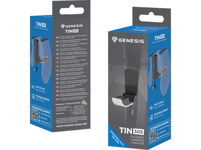 - Искате ли още по-удобен начин за зареждане на вашия контролер? Потърсете GENESIS Tin 305. Това компактно зарядно устройство е лесно за използване. Всичко, което трябва да направите, е да го включите към USB-C порта на конзолата, да го разгънете и да поставите контролера си върху него. Процесът на зареждане ще започне автоматично. Наистина е лесно.