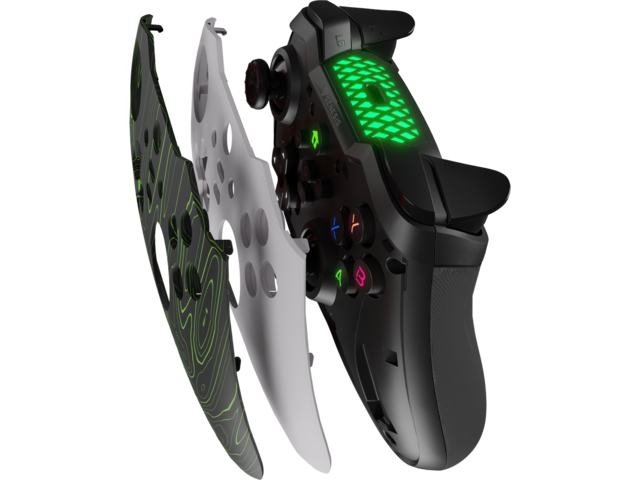 Разчупете рутината на традиционните контролери. Използвайте сменяемия преден панел, за да персонализирате външния вид на Mangan 400 според стила си. По всяко време сменете цветния капак (предлага се в черно, червено или бяло) с алтернативната му версия, която ще намерите в кутията.