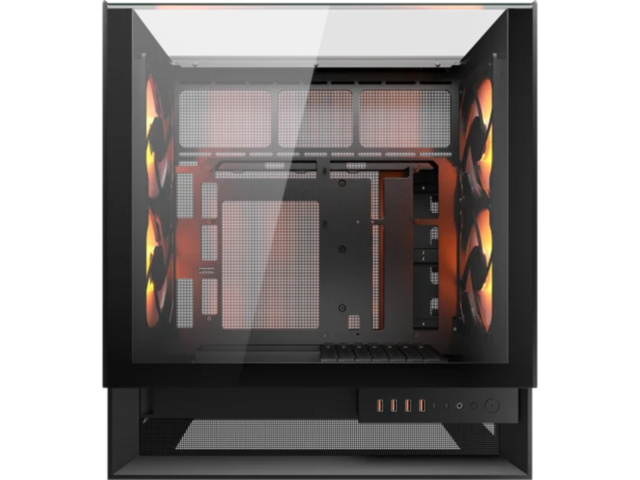 | Портове на предния панел | 2x USB 3.2 Gen 2 Тype-C, 4x USB 3.0, Комбо жак, RGB бутон |