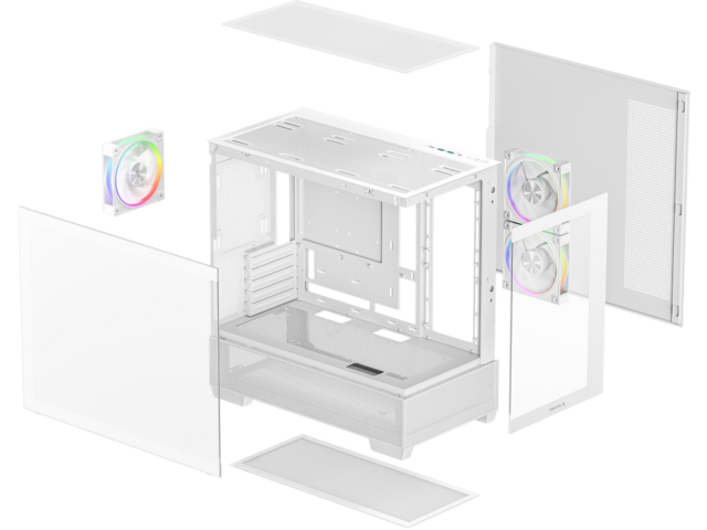 ОхлажданеВключени вентилатори: 2x 120 мм PWM aRGB, с обърнати перки + 1x 120 мм PWM aRGB