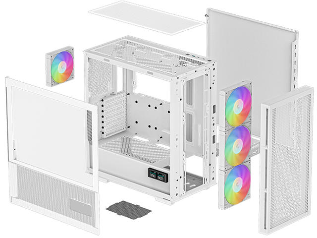 Материали: ABS+SPCC+Tempered Glass Отвори за разширителни слотове: 7 Скрити слотове за устройства: 2x 3.5", 2+1x 2.5" Addressable RGB Дигитален панел Охлаждане: