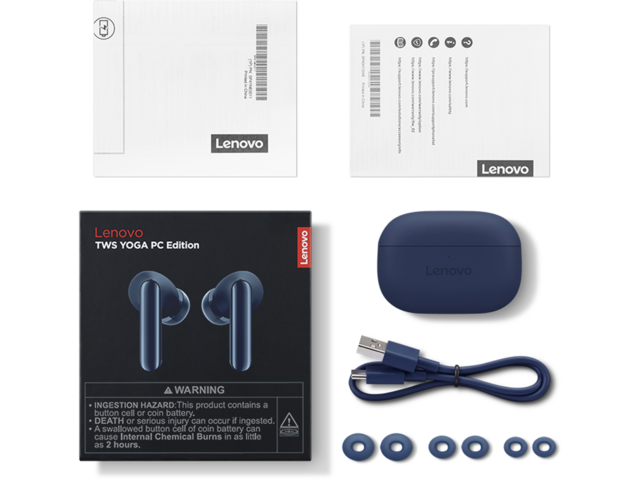 Лесно свързване с YOGA PC, трикратно докосване за превключване между устройства, AI превключване на EQ режим (среща/филм/музика/игри), 3 микрофона от всяка страна и шумопотискане с гласов отпечатък за кристално чисто качество на разговорите, потапящо хибридно активно шумопотискане, поддръжка на Lenovo Vantage.