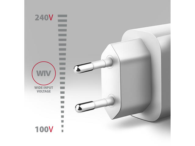 - Корпусът на захранващия адаптер е с приятна форма и компактни размери. Комбинацията от малки размери и широк диапазон от входни напрежения, превръща зарядното устройство в идеален помощник при пътуване.