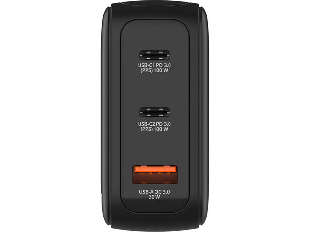 - Два USB-C PD 3.0 порта с мощност до 100 W всеки, един USB-A QC 3.0 порт с мощност до 30 W.