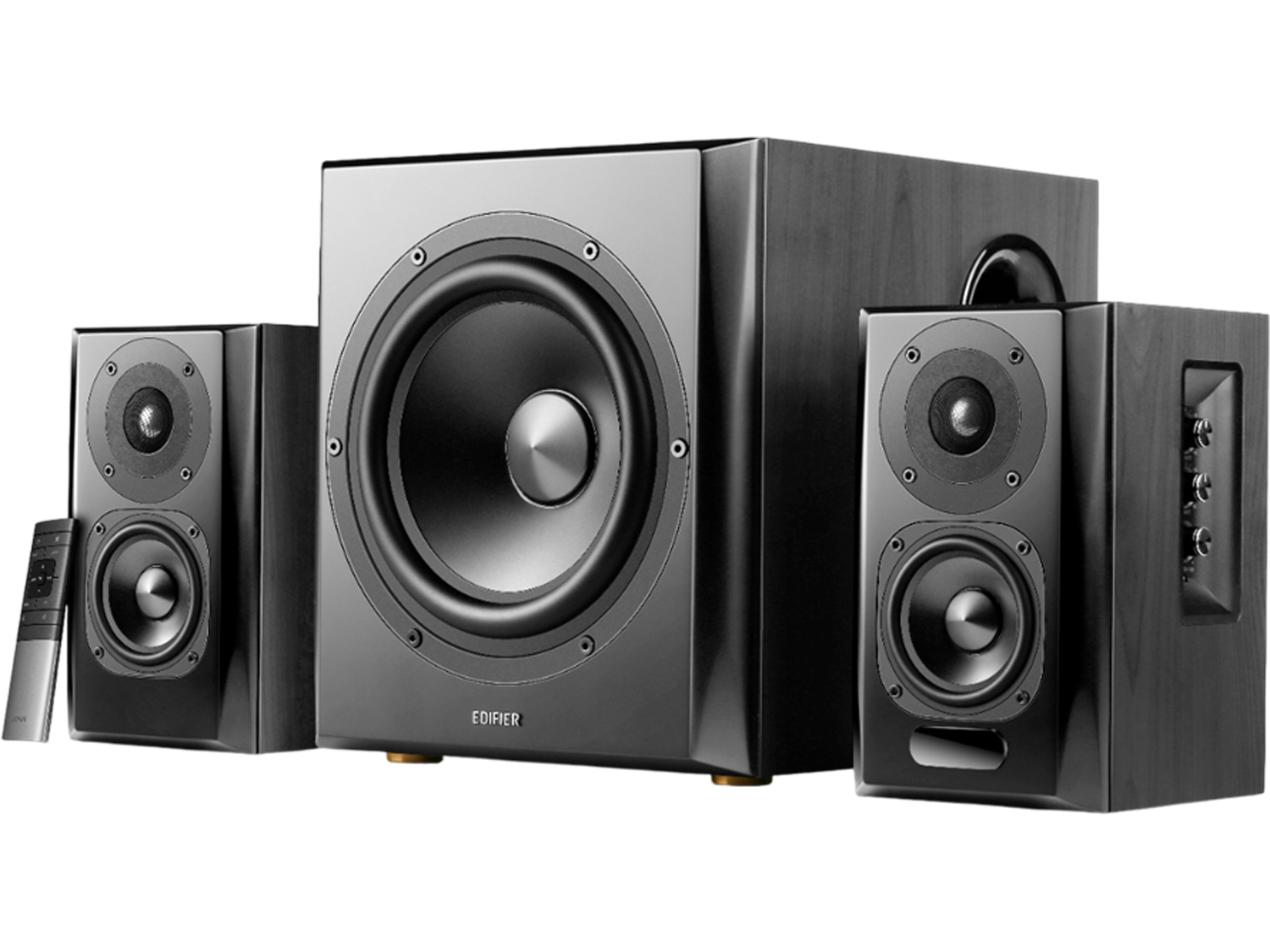 - ¾" високоговорители с титанов купол (15 W * 2), 3,5" средночестотни високоговорители с алуминиева мембрана (25 W * 2) и 8" субуфер с полипропиленова мембрана