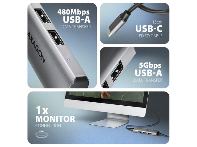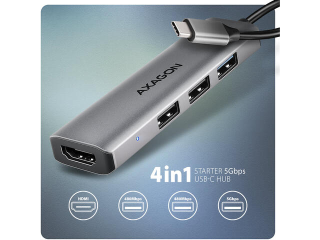 - USB-C кабел с дължина 15 см за свързване на хъба към лаптоп.