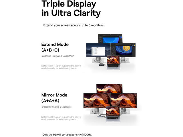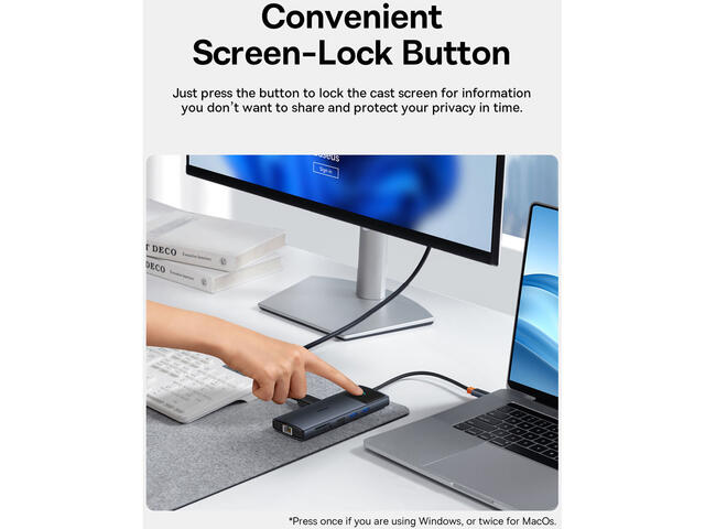 - Тип конектор: 2x HDMI 4K 60Hz, 1x DisplayPort 4K 60Hz,2x USB-A 5Gb/s,2x USB-A 480Mb/s,1x RJ-45 1000Mb/s,1x SD/TF 104MB/s,1x USB-C PD 100W