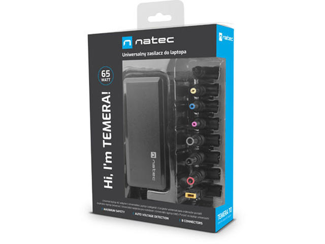 Един захранващ адаптер, много възможности. Изберете универсалния захранващ адаптер за лаптопи Natec Temera 70 и зареждайте с лекота най-популярните модели. Ще го направите с 8 сменяеми. Безопасно и ефективно. С Natec Temera 70 това е лесно. Lenovo, HP, Dell, Asus? Отсега нататък това няма значение. Natec Temera 70 е универсален захранващ адаптер, който ще ви позволи да допълвате захранването на лаптопи от най-известните производители. Използвайте 1 от всеки накрайник (ще намерите цели 8), включен в комплекта, и сменете конектора с такъв, който ще ви позволи да включите захранващия адаптер. Natec Temera 70 също така ще работи особено добре при пътуване и когато се налага да използвате повече от един лаптоп от различни производители едновременно. Заложете на удобството. Не е нужно да се притеснявате за безопасността на устройството си. С Natec Temera 70 можете лесно да зареждате лаптоп с изисквана мощност 65 W, при това с грижа за вашата електроника. Интелигентна система ще се погрижи за избора на правилните параметри на зареждане (напр. напрежение), за да не повредите оборудването си. Важно е да се отбележи, че сме оборудвали този модел с всички необходими защити, като например OL/OC/OC/SC/OT. Не забравяйте обаче да се уверите, че максималното захранващо напрежение на вашия лаптоп е в съответствие със спецификациите на Natec Temera 70. Това е основата за правилна работа и използване на пълния потенциал на захранването.