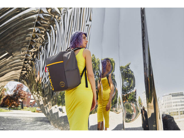 - Раницата се затваря с цип към гърба за по-голяма сигурност.