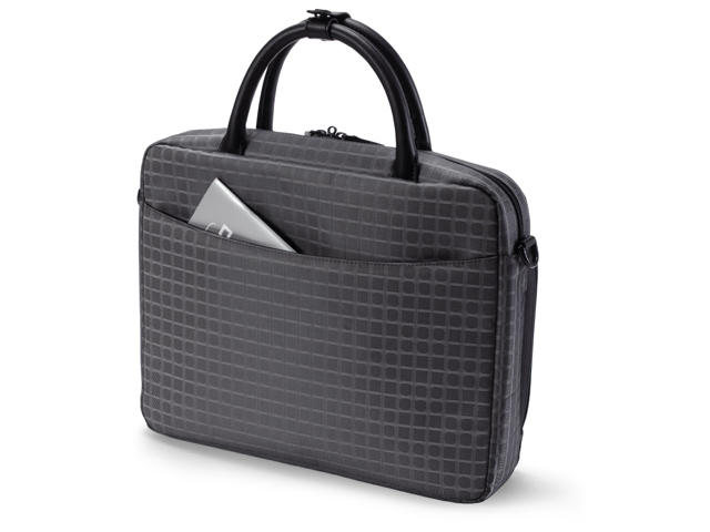 LadyStyle е името на новата чанта на Dicota, предназначена за лаптопи с размери на дисплея от 14 до 15 инча (от 35.56 до 38.10 см). Характеристики: - елегантен външен вид на дамска чанта; - висококачествен полиестерен плат с жакардов десен в съчетание с дискретни апликации от кожа; - подплатено отделение за лаптопа; - практичните допълнителни отделения предлагат възможност за съхранение на документи, захранващ блок и др; - работна станция с органайзер за мобилен телефон, PDA, химикалки и портфейл; - подарък: подвижен козметичен несесер за грим, огледало и други лични принадлежности; - сваляща се презрамка; - елегантен черен интериор; - външни размери: 38 x 32.5 x 10 см; - размери на отделението за лаптопа: 35 x 28 x 6 см; - тегло: 0.85 кг. Гаранция: 36 месеца |
