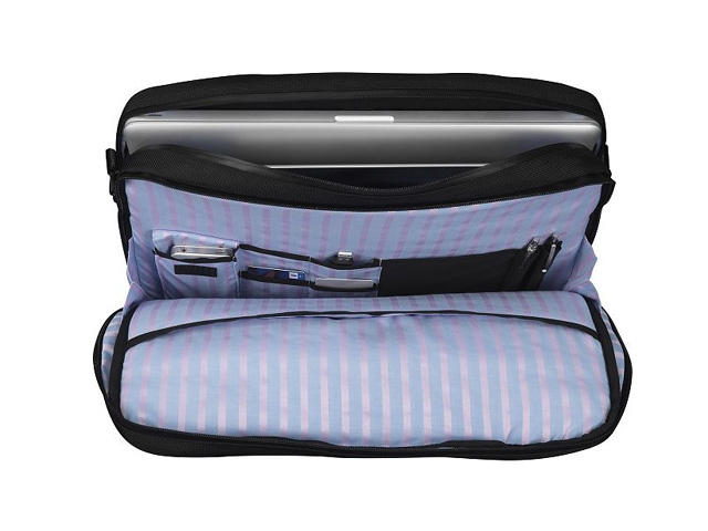 - Отделение за преносим компютър с размери на дисплея до 16 инча, максимален размер 38 × 26 × 4 см