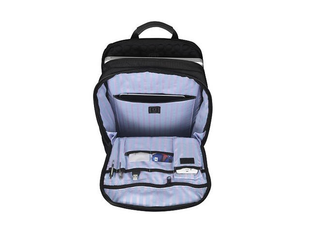 • Отделение за преносим компютър с размери на дисплея до 16 инча, максимален размер 38 × 26 × 4 см
