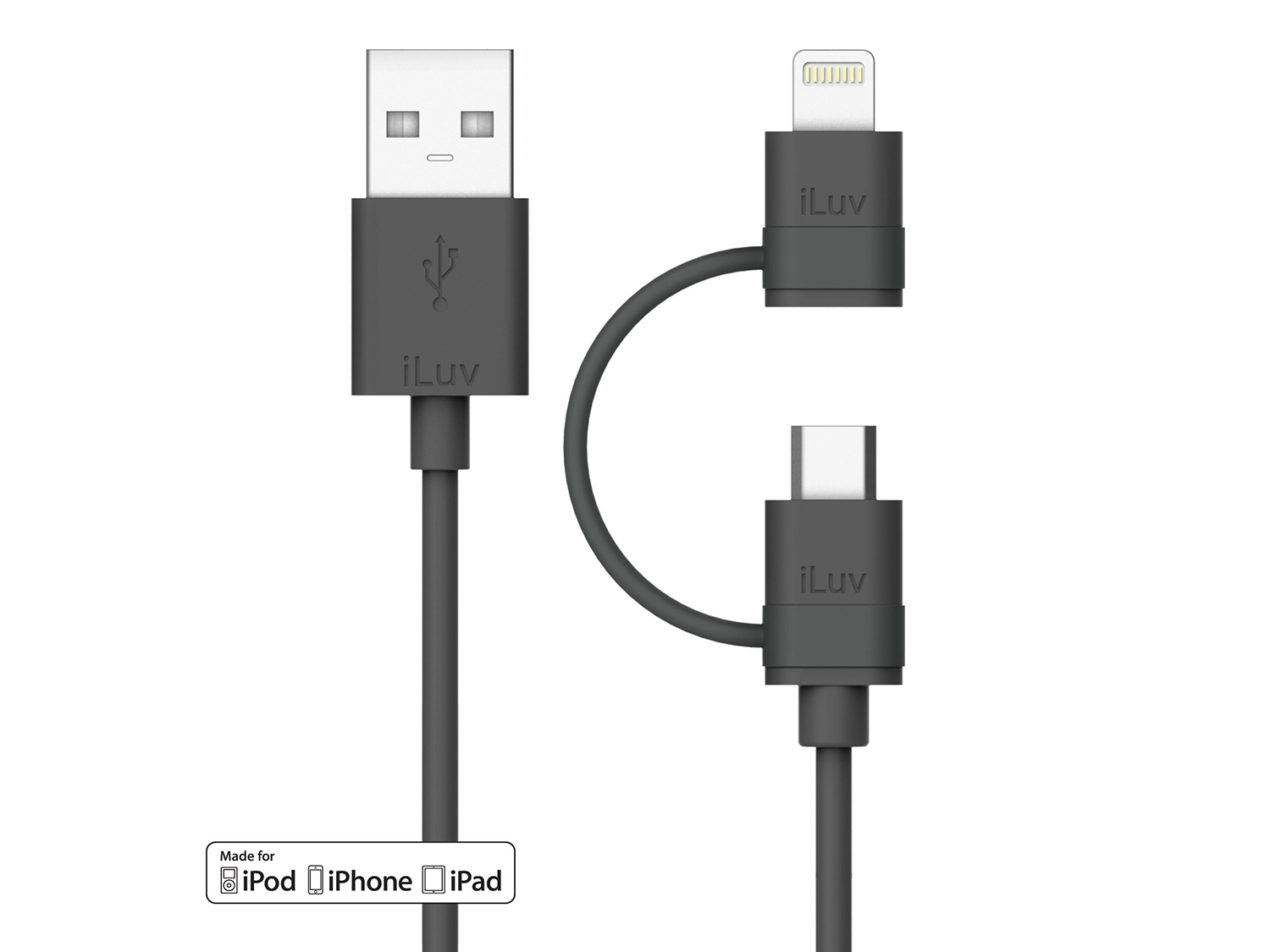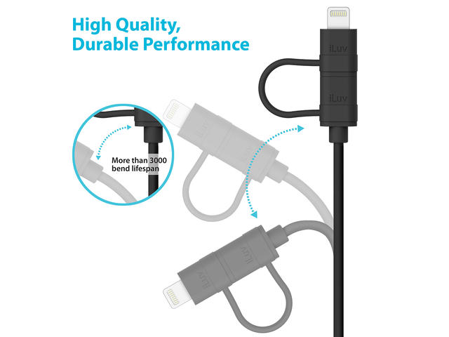iLuv 2-в-1 Lightning кабел с Micro USB, в черно