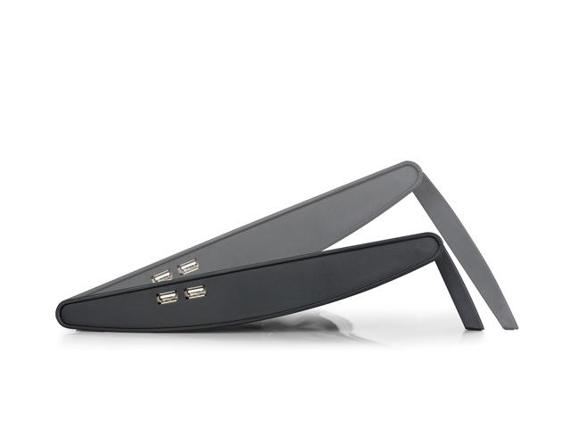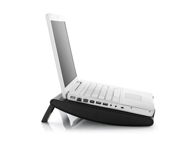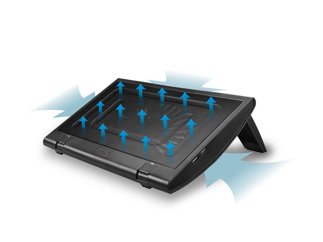 - тих, 200 мм вентилатор, който директно вдухва студен въздух към лаптопа, с което повишава драстично охлаждането му