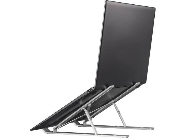 • Лесна за пренасяне стойка за лаптоп с индивидуално регулируем ъгъл на наклон за удобно използване на лаптопа върху маси или работни станции