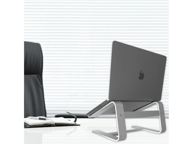 • Macally ASTANDSG е алуминиева поставка, която се повдига до 15 см височина, срещата нивото на очите, за да подобри позицията за стоене на вашето тяло и също така ъгъла ви на виждане. По този начин вие намалявате риска от болките във врата и главоболията, които се получават в следствие на неправилна стойка
