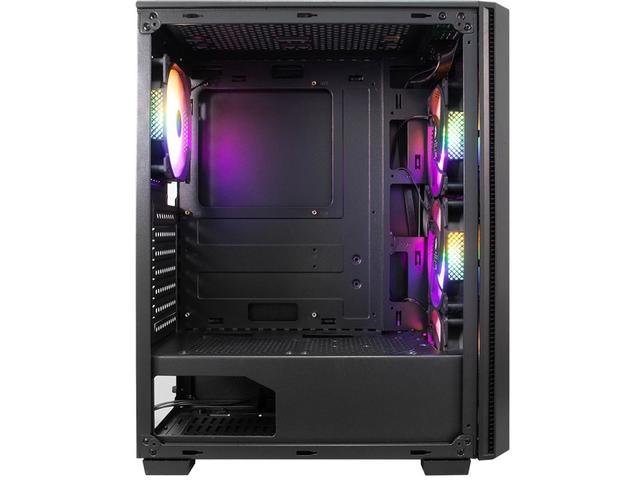 Включените в кутията вентилатори са със статичен RGB ефект - не може да бъде променян. Отвори за разширителни слотове: 7 Достъпни слотове за устройства: 0 x 5.25" Включени вентилатори: 4 x 120mm RGB със статичен светлинен ефект Възможности за добавяне на вентилатори: