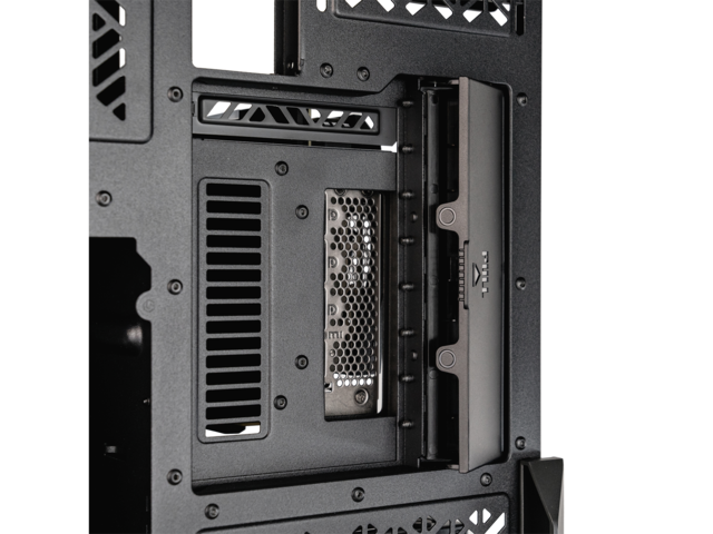 Материали: Мрежа, стомана, пластмаса, закалено стъкло (страничен ляв панел) Отвори за разширителни слотове: 8 Скрити слотове за устройства: 2.5" / 3.5" Drive Bays (Combo): 12; 2.5" Drive Bays: 12