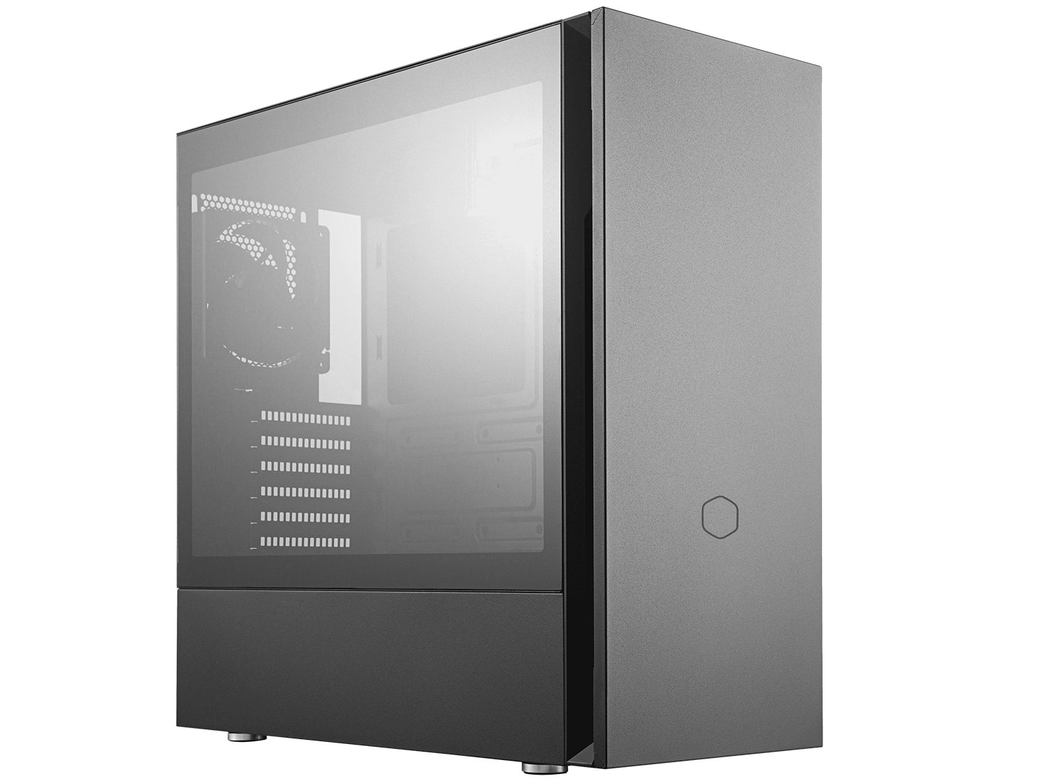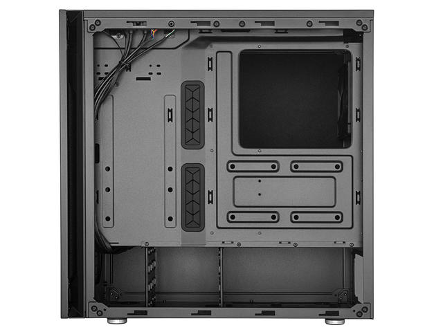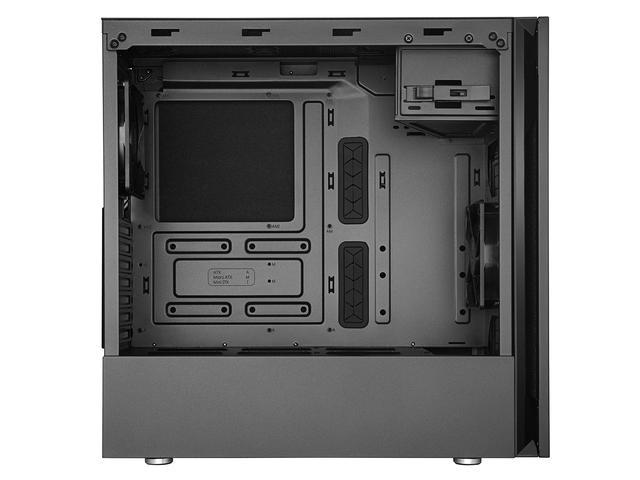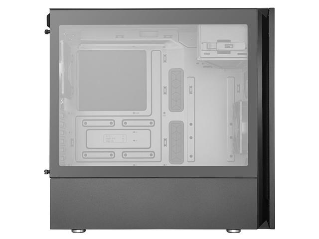 Материал: стоманено тяло, пластмасов преден панел, закалено стъкло страничен панел Отвори за разширителни слотове: 7 Достъпни слотове за устройства: 1 x 5.25" Охлаждане: