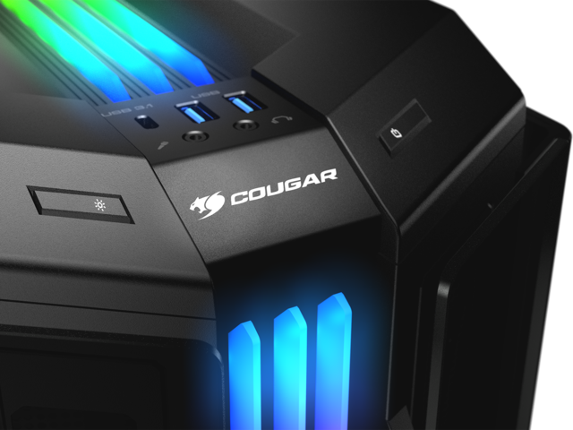 Новата Trelux технология на Cougar осигурява на Gemini T мощна система за осветление: три дълги RGB ленти, които минават през предната и горната част на кутията. Динамичното Trelux RGB осветление ще изуми всички!