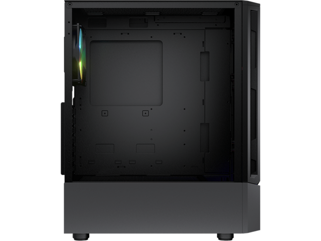 Ляв панел закалено стъкло RGB синхронизация с M/B Отвори за разширителни слотове: 7 Слотове за устройства: 2 x 3.5", 2+1 (преобразуван от 3,5" гнездо за устройство) / (включени са 2 SSD тави) Охлаждане: Максимален брой вентилатори: 6