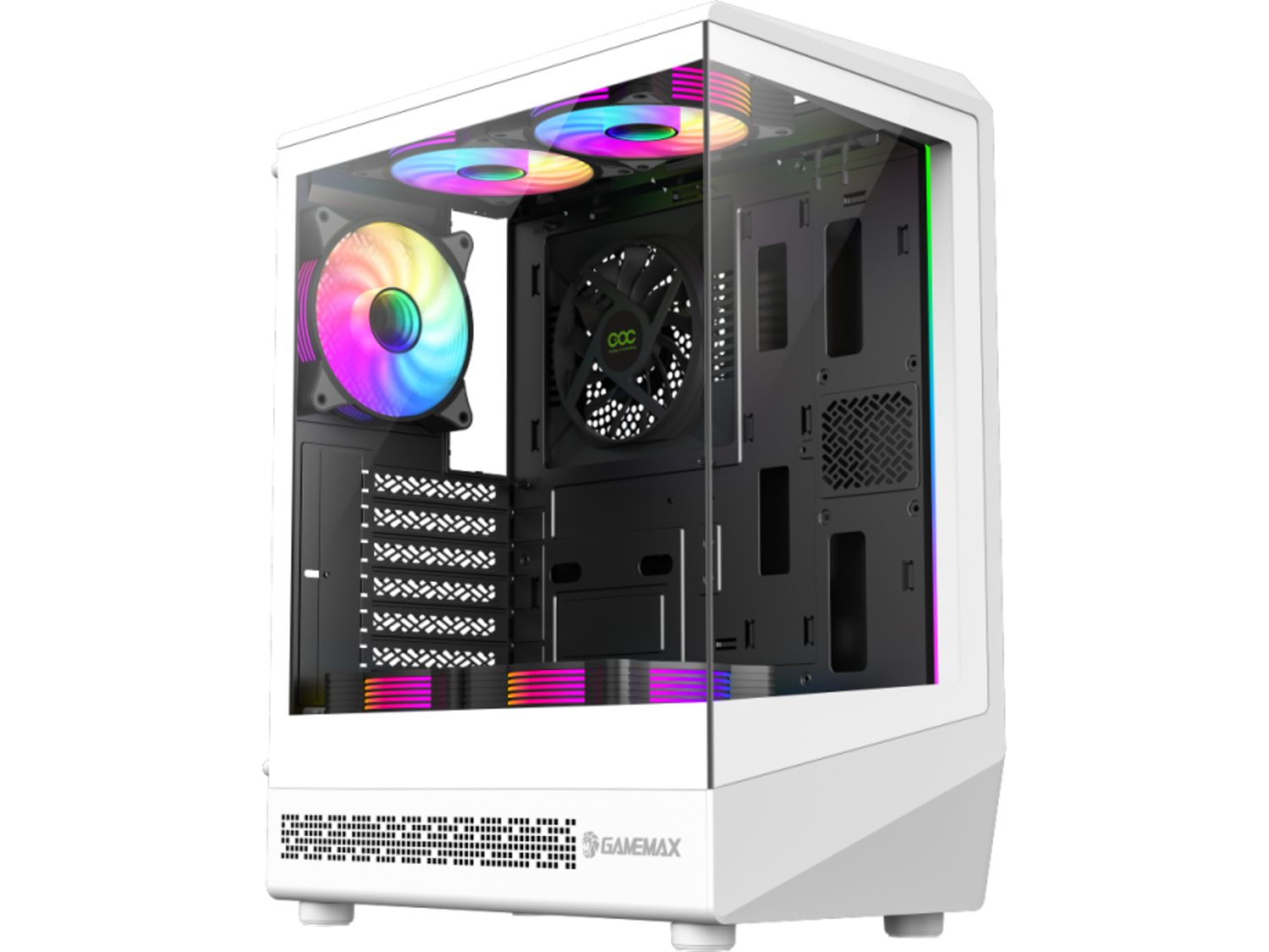 ОхлажданеВключени вентилатори: 2x 120 мм aRGB, с обърнати перки + 3x 120 мм aRGB + 1x 120 мм COC Turbo вентилатор, вграден в кутията зад дънната платка