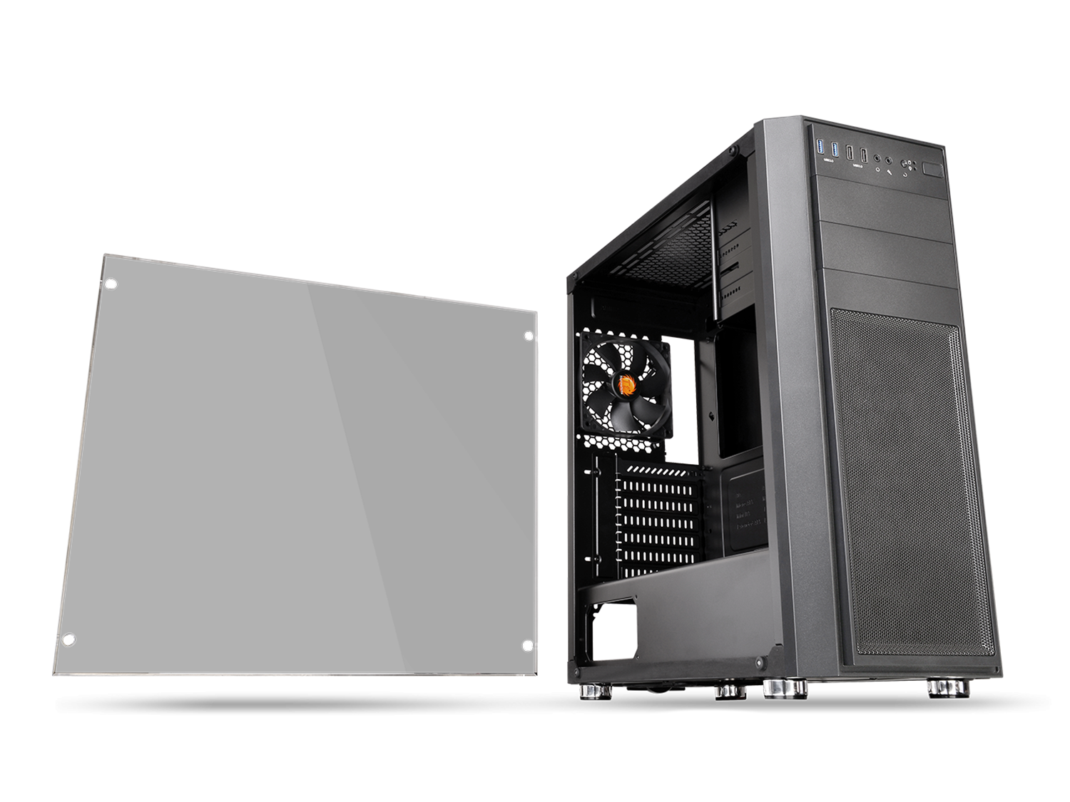Материал: SPCC Страничен панел: Темперирано стъкло Отвори за разширителни слотове: 7 Преден: 120мм вентилатор х3 Заден: 120мм вентилатор х1 (включен) Горен: 120мм вентилатор x3, 140мм вентилатор x2 Поддържан размер на захранване: