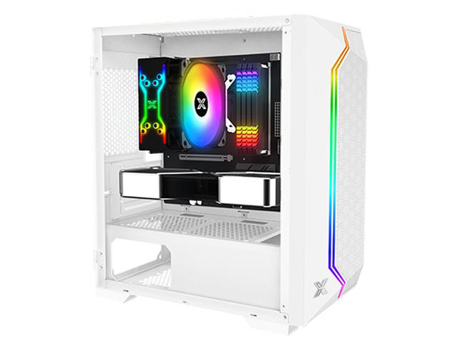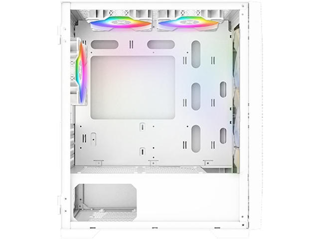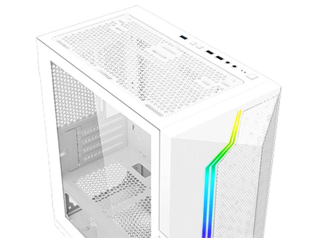 Отвори за разширителни слотове: 4 стандартни слота Слотове за устройства: 2x 3.5"/2.5" SSD/HDD (комбиниран) Преден панел: Meshed Grill ARGB LED Ляв панел: Закалено стъкло Охлаждане:
