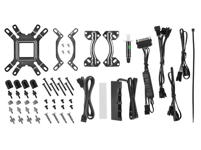 - вентилатор -140x140x26мм(2броя) - радиатор - 323x146x27мм - помпа - 91x79x71мм Вентилатор: