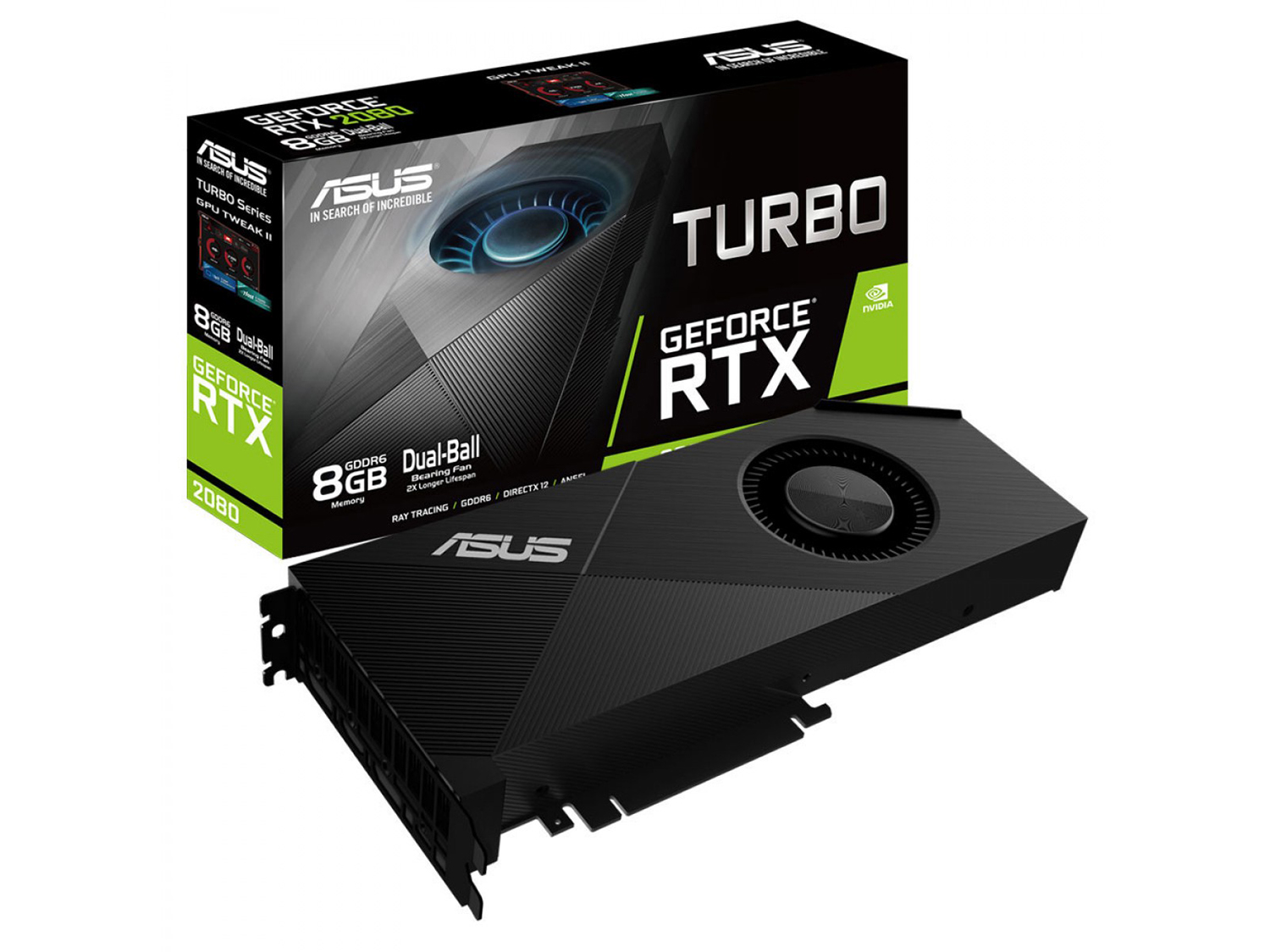 Turbo GeForce RTX 2080 разполага с 80мм вентилатор с двоен лагер, който е тих, ефективен и трае два пъти по-дълго време. За по-нататъшно увеличаване на надеждността, ASUS са проектирали вентилатора да бъде устойчив на прах IP5X, което означава, че прахът няма да може да повреди вътрешните му компоненти.