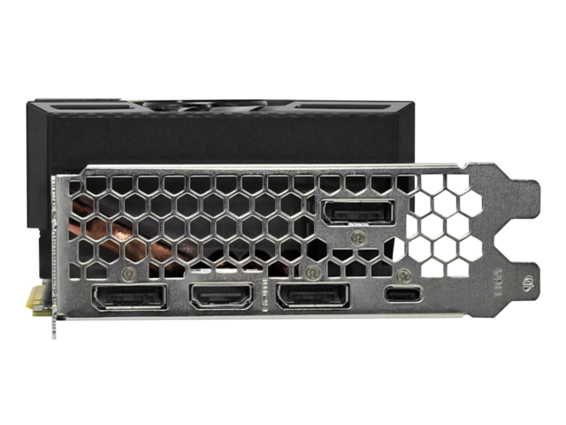Голямата медна конструкция, пряко свързана с GPU и топлинните тръби, може ефективно да разсейва топлината от видеокартата.