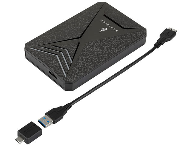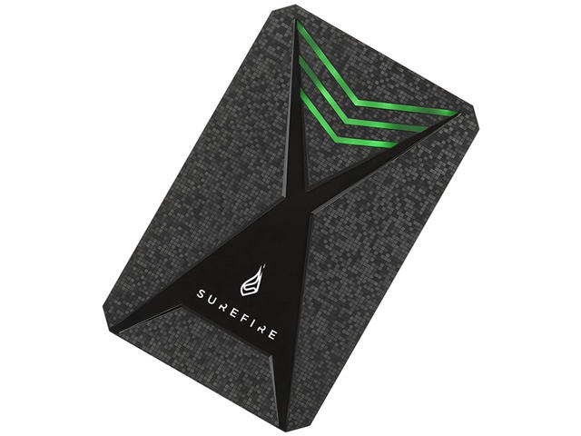 Подходящ както за конзола, така и за компютърни игри. Удобно съхранявайте всичките си игри на едно място. Софтуер за архивиране на Nero Може да се използва и като обикновен външен HDD за съхранение на файлове Отличаващ се с многоцветни RGB променящи се LED акцентни светлини и дизайн на корпуса, повлиян от най-новите конзоли, SureFire Gaming Hard Drive има високоскоростни скорости на трансфер на данни, идеални за съхранение на най-новите игри. Интерфейс USB 3.2 GEN 1 за скорост на трансфер до 5 Gbps, намалявайки значително времето за архивиране на играта. Твърдият диск се доставя с USB-C™ адаптер, за да може да се използва с различни устройства Спецификации: