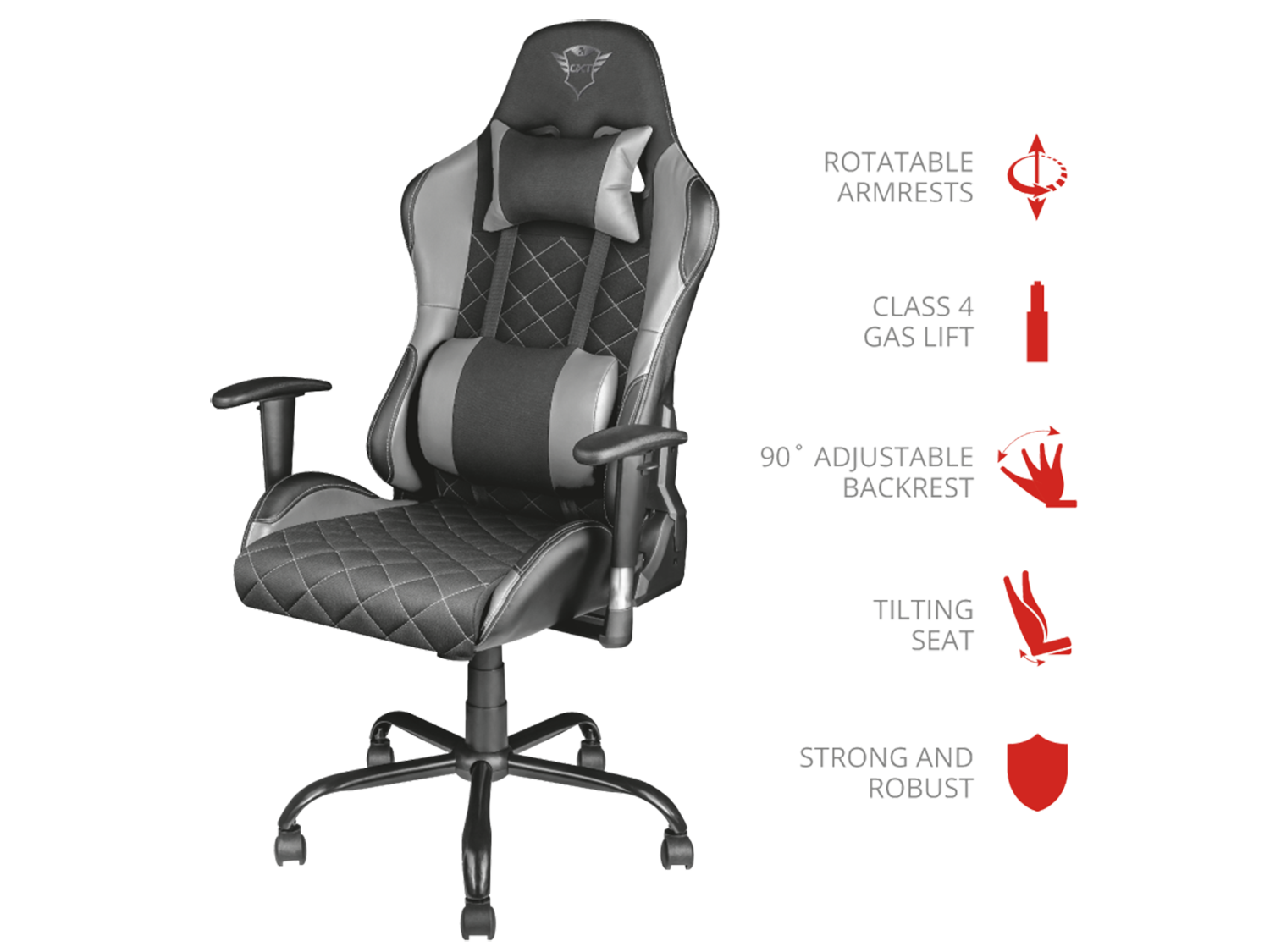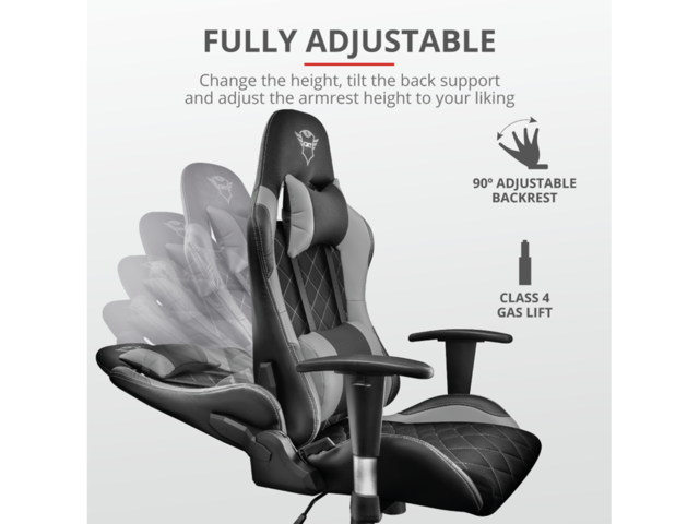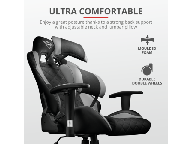 Геймърският стол от Trust е нещо, на което всеки може да се наслади. Издръжливият стол е създаден за максимално тегло 150 kg и е препоръчителен за всеки геймър с височина между 160 и190 сантиметра. Седалката с ширина 42 cm и дълбочина 50 cm е достатъчно голяма, за да осигури максимална опора и комфорт.