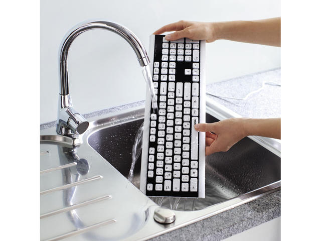 - Клавиатурата може да се почиства под течаща вода или да се потопи напълно във вода