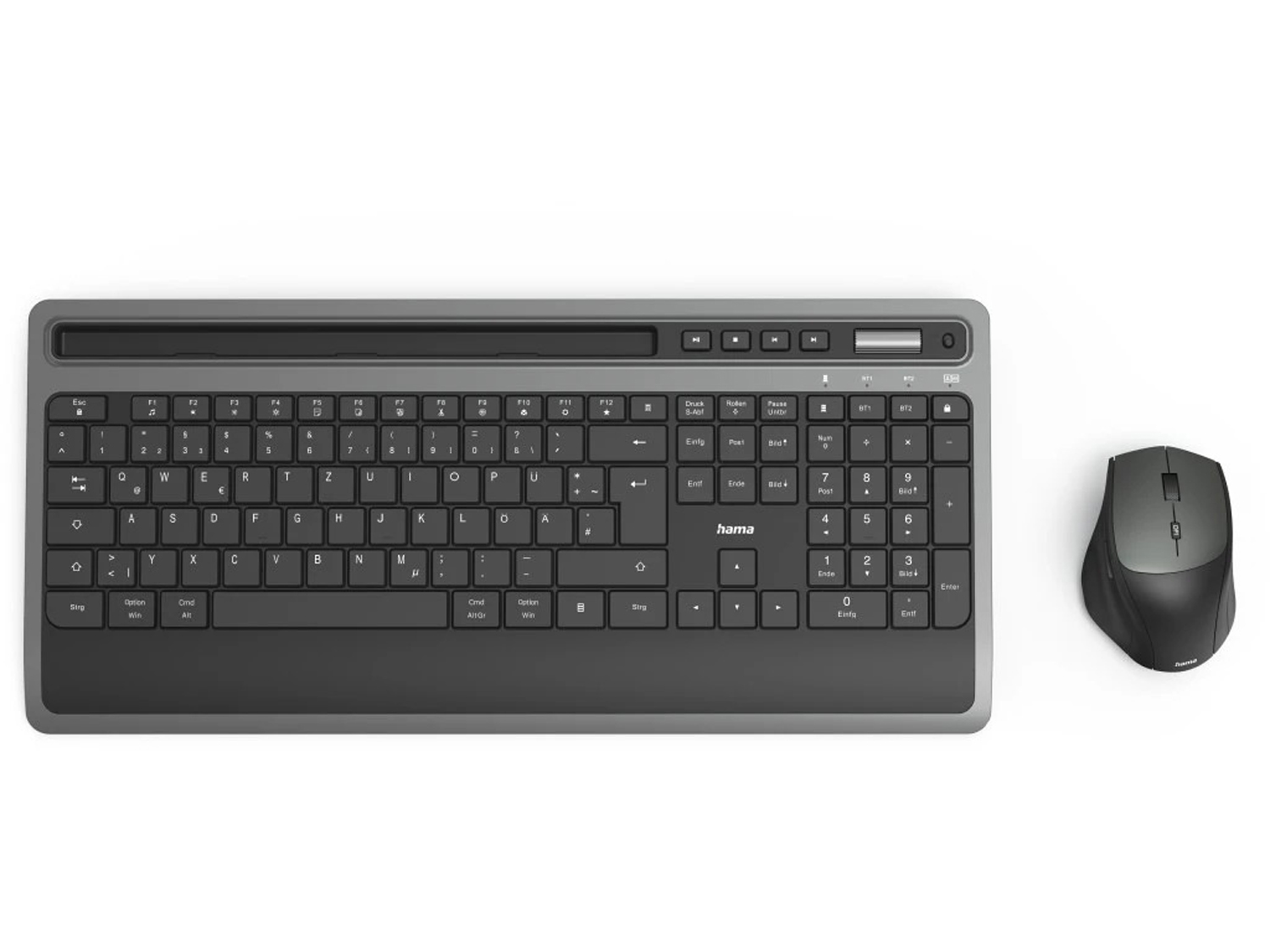 - Безжичен комплект мишка и клавиатура KMW-600 Plus с вградена стойка за смартфон