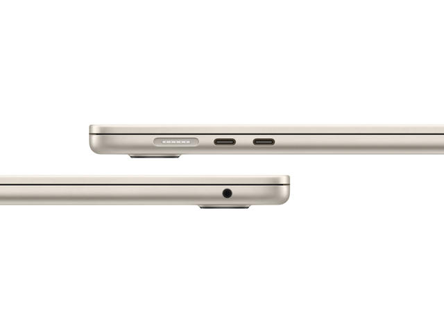- Тестовете са проведени от Apple през януари 2024 г. с предпроизводствени 15‑инчови MacBook Air системи с Apple M3, 8-ядрен CPU, 10-ядрен GPU, предпроизводствени 13-инчови MacBook Air системи с Apple M3, 8-ядрен CPU, 8-ядрен GPU, конфигурирани с 8GB RAM и 256GB SSD, както и PC системи, базирани на Intel Core i7 с Intel Iris Xe Graphics, 16GB RAM, 512GB SSD и най-новата версия на Windows 11, налична към момента на тестване. Най-продаваният 15-инчов Intel Core i7 PC лаптоп според публично достъпни данни за продажбите през предходните дванадесет месеца. Показателите за производителност на Speedometer 2.1 са тествани със Safari 17.3 на macOS Sonoma и Chrome 121.0.6167.86 на Windows 11 Home с WPA2 Wi‑Fi връзка. Тестовете за производителност са проведени с конкретни компютърни системи и отразяват приблизителната производителност на MacBook Air.
