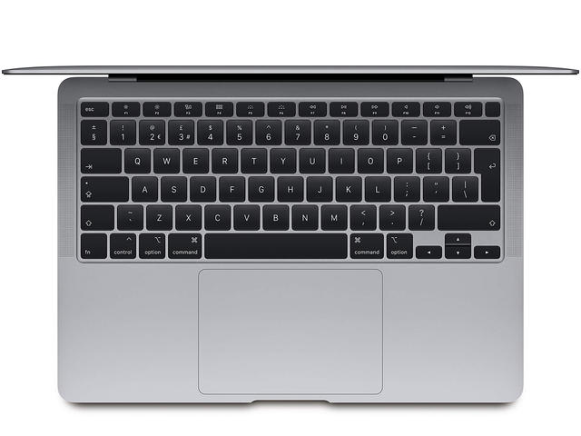 MacBook Air вече разполага с новата Magic Keyboard, която първо се появи на 16-инчовия MacBook Pro. Прецизният ножичен механизъм с 1 мм ход осигурява отзивчиво, удобно и тихо писане. Стрелките с обърнато Т позволяват да се носиш по редове код, таблици, или игри. А клавишите с подсветка и сензор за околна светлина помагат да пишеш при слабо осветление.