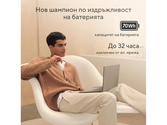 До 32 часа* заряд на батерията свежда времето, когато сте обвързани с кабел до минимум, и засилва продуктивността и активната ви почивка до максимум – навсякъде и по всяко време. Работете без връзка