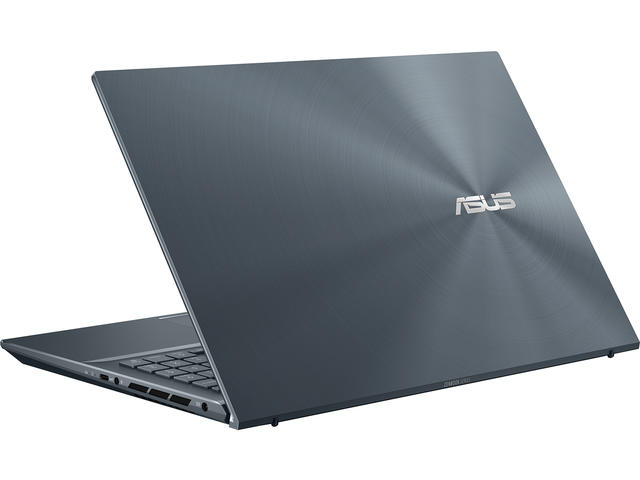 Елегантният дизайн на ZenBook Pro 15 OLED се вписва идеално във всяка професионална или бизнес среда. Той е със спокойно и изискано покритие в цвят Pine Grey, със специална версия извън центъра на емблематичното за ZenBook метално покритие на капака. То е фино, уникално и изискано и придава свеж вид на вашето творческо работно място.