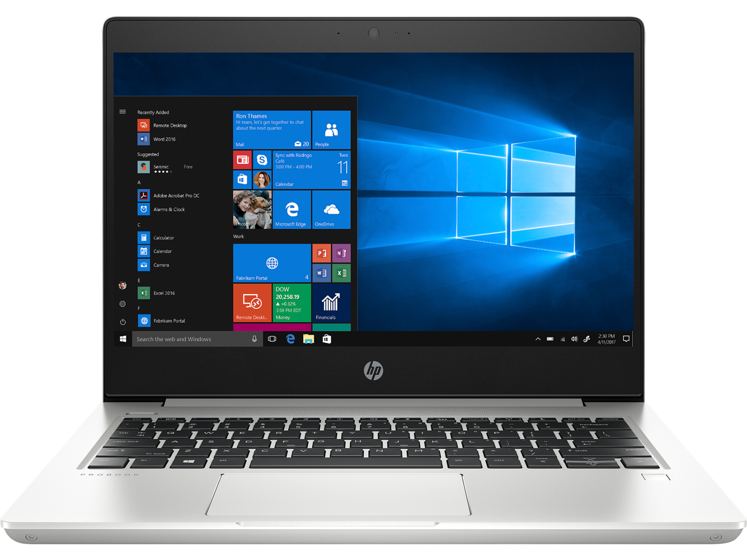 HP ProBook 430 осигурява стилен дизайн за всеки бизнес. Ултратънкото шаси с ясни линии, чисти ръбове и изискано естествено сребристо покритие притежава дисплей почти без рамки, който се отваря на 180 °, което улеснява споделянето на съдържание.